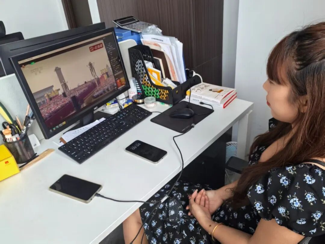 当日上午,会员企业代表及员工们怀着崇敬的心情,准时聚集在各大官方直播平台前,共同见证这一庄严时刻。有的企业组织员工集体观看,大家整齐就座,神情专注;有的则自行安排时间,在家中或办公室认真观看大会直播。