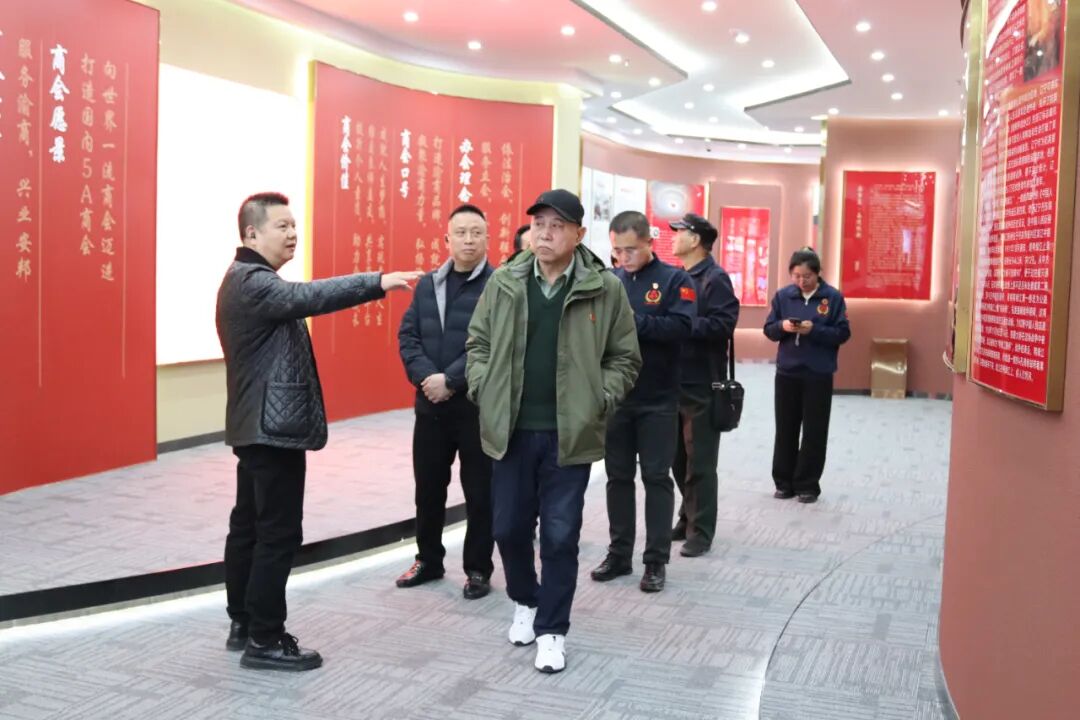 来访嘉宾先后参观了渝新文化馆、民建会员之家,重点走进“党群活动中心”与“党建学习室”。伯宏灵围绕党的成长历程娓娓道来,详细介绍了重庆商会党支部自2019年12月成立以来,在党建引领、持续创新、党旗飞扬、践行初心等方面的扎实举措与丰硕成果,让在场每一位嘉宾都深切感受到商会党建工作的深厚底蕴与强劲活力。